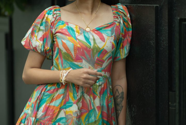 This dress features a delicate, flowing silhouette adorned with soft, watercolor-inspired hues that evoke the warmth of the golden hour. Crafted from lightweight, breathable fabric, it drapes gracefully, creating a flattering fit for any occasion. The subtle ruched detailing on the bodice adds a touch of texture, while the mid-length skirt allows for effortless movement. Ideal for outdoor events, sunset strolls, or elegant gatherings, this dress captures the essence of serene glamour with a modern twist